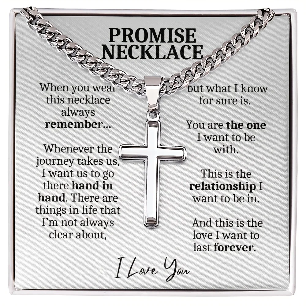 Cross + Stainless Steel Cuban Chain + Gift Box + Card Men's Necklace Set As A One-year Anniversary Gift For Boyfriend